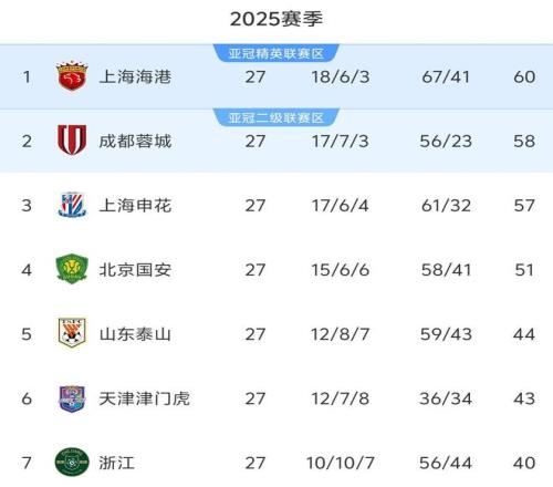 北京时间10月18日,中超联赛第27轮第二个比赛日3场比赛顺利进行。最新积分榜方面,前7球队本轮过后积分均达到40分,遭遇2连败的北京国安提前3轮彻底无缘争冠,深圳新鹏城拿到关键3分逃出生天。