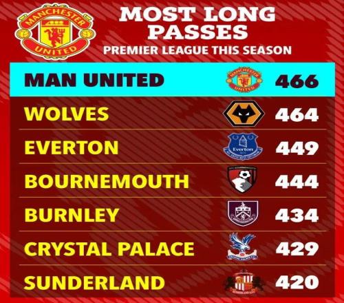 阿莫斯赛前已经明确表示会采取这种战术,因为他说曼联的前场人员结构适合长传后争夺第二落点的打法。新门将塞纳·拉门斯尤其坚决,他一点不介意自己的大脚长传成功率低,在与利物浦之战,他的19.5%的传球成功率全场倒数第一,46次传球只有9次成功。首秀对桑德兰,拉门斯44次传球17次成功。