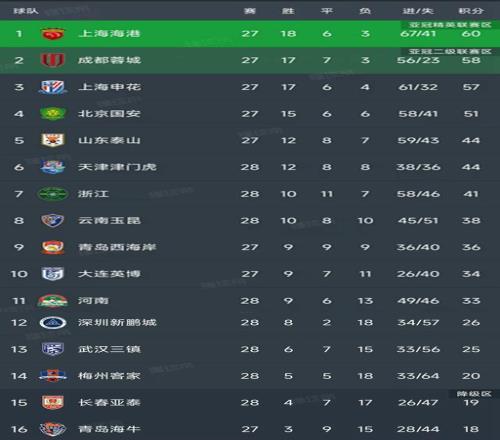 北京时间10月25日,今日的中超第28轮又结束了两场对决,我们一起看看最新积分榜变动,主要的信息如下:长春亚泰2-2被天津津门虎绝平,浙江队2-2绝平河南队!