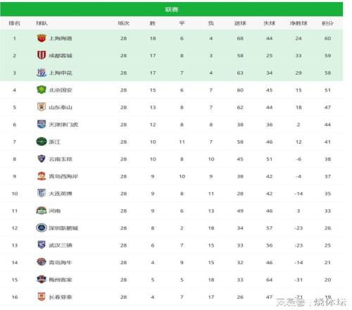 此外,青岛海牛本轮战胜北京国安,全取3分后逃离降级区,排名攀升到第14位。保级端的形势依然非常复杂,悬念或将留到最后时刻,青岛海牛下轮与武汉三镇的对决将是生死战。