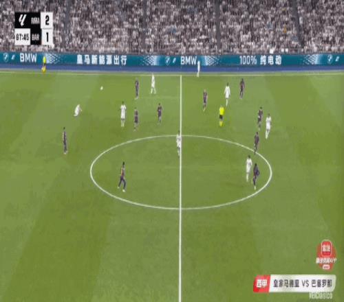 下半时比赛,贝林厄姆在点球点附近推射破门,但因为皇马存在着越位进球被判无效。