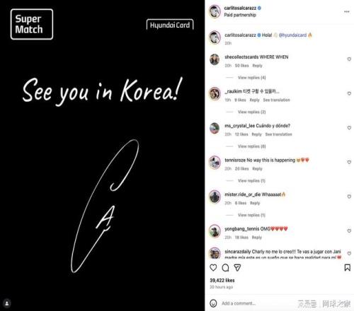 就在不到一个月前,阿尔卡拉斯刚刚因“伤病困扰”退出了上海大师赛。这位西班牙小将当时在社交媒体上表示:“非常遗憾地宣布,今年我将无法出战2025上海网球大师赛!近来我一直饱受伤病困扰。”阿尔卡拉斯与辛纳即将在韩国进行的表演赛尚未公布具体细节,但主办方承诺“将很快确认并公布比赛日期、场地、门票开售时间及其他相关细节”。