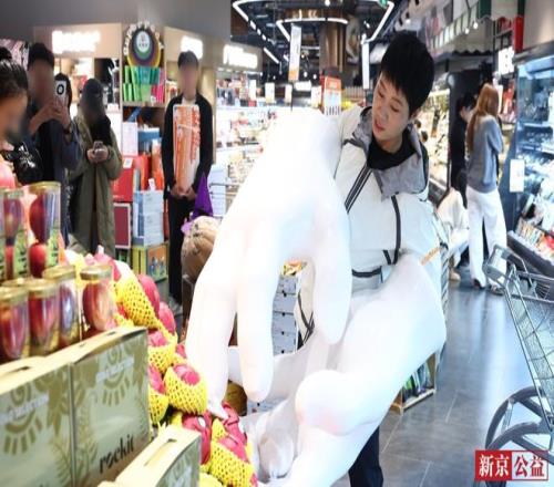张会在超市挑选水果,以体验“淀粉人”的日常生活状态。