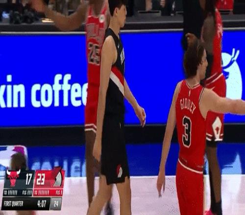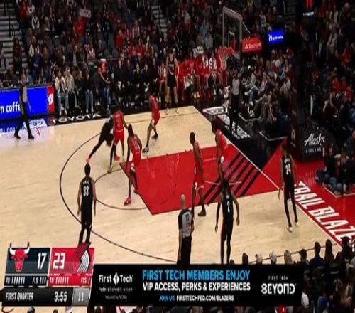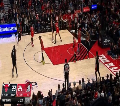 第一节开拓者格兰特拿下8分,公牛武切维奇拿下10分,首节战罢开拓者29-28领先公牛