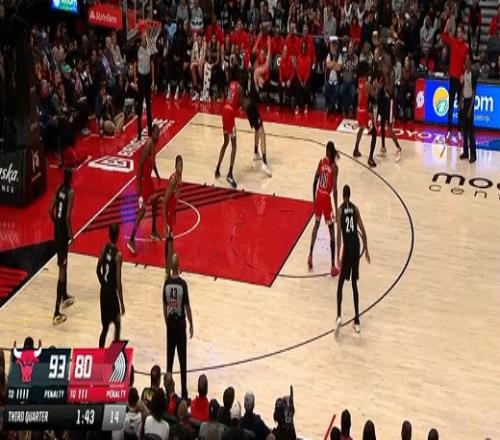第三节开拓者格兰特拿下7分,公牛奥科罗拿下11分,第三节结束开拓者82-98落后公牛