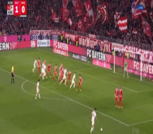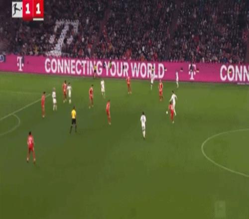 第29分钟,拜仁踢出默契配合,奥利塞过人之后做球,凯恩转身低平球传中,格纳布里倒三角回敲,伦纳特-卡尔轻松推射破门,1-0!