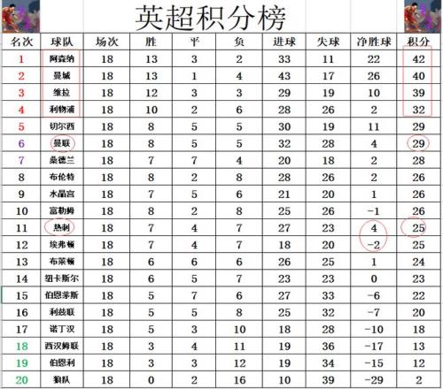 积分榜方面,榜首竞争很激烈,阿森纳,曼城和维拉本轮都赢了球,阿森纳还是多曼城2分,多维拉3分,微弱优势继续领跑。利物浦凭借着一波3连胜在争四中占据主动,超过切尔西,曼联3分位列第4。热刺今天小胜水晶宫止住颓势后,升至下半区“榜首”,差第6的曼联4分。