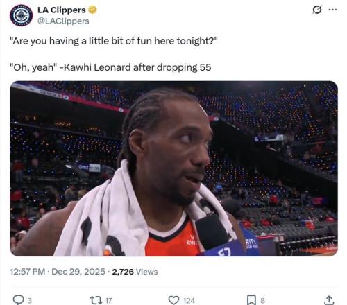 狂轰55分11板5断3帽,小卡连创纪录成NBA历史首人!快船轻取东部第一豪取现存最长4连胜。