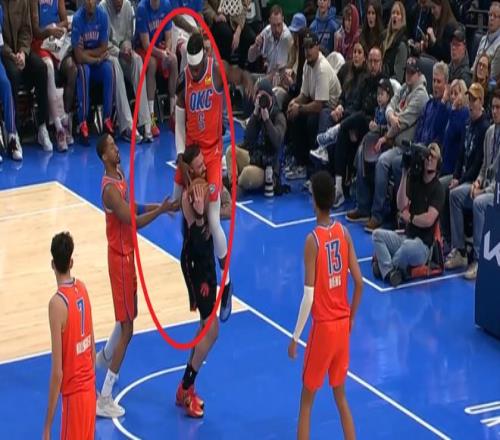 易边再战,RJ-巴雷特连续突破上篮得手,猛龙领先到本场最大的7分分差,再次打停雷霆。威金斯和杰林连中三分止血,亚历山大防守时吃到加拿大队友巴雷特暗肘,这自己人?亚历山大急停撤步中投得手,随后再造犯规,一人连拿6分带队反超比分。巴恩斯起身时又肘翻切特,裁判无任何表示,只是吹了进攻犯规回看后也没有升级,亚历山大突破上篮再得手,雷霆领先到5分。迪克和巴雷特连中三分稳住局势,谢德迎着切特防守命中压哨三分,猛龙追到2分分差。