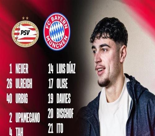 拜仁官方公布了欧冠联赛阶段第8轮,客战埃因霍温的大名单。凯恩领衔,于帕梅卡诺、格纳布里、博埃回归。守门员:1-诺伊尔、26-乌尔赖希、40-乌尔比希后卫:2-于帕梅卡诺、4-约纳坦-