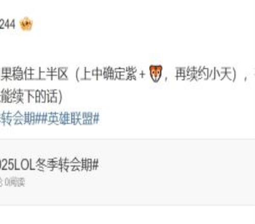 爆料人:WBG上中确定紫,再续约小天有意补强竞拍gala