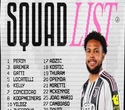 尤文图斯官方公布了意甲第22轮主场对阵那不勒斯的比赛大名单,伊尔迪兹领衔,鲁希、平索利奥缺席,17岁门将胡利入选。